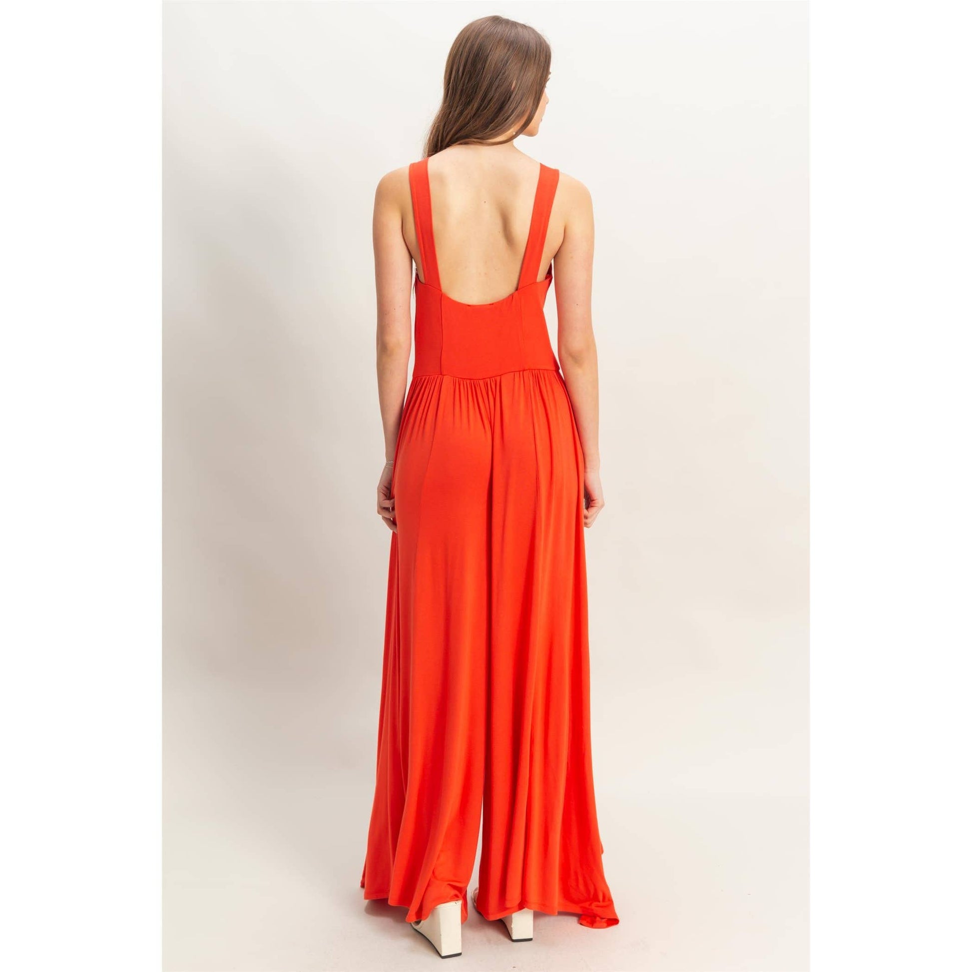 Knotted Bust Sleeveless Jersey Jumpsuit