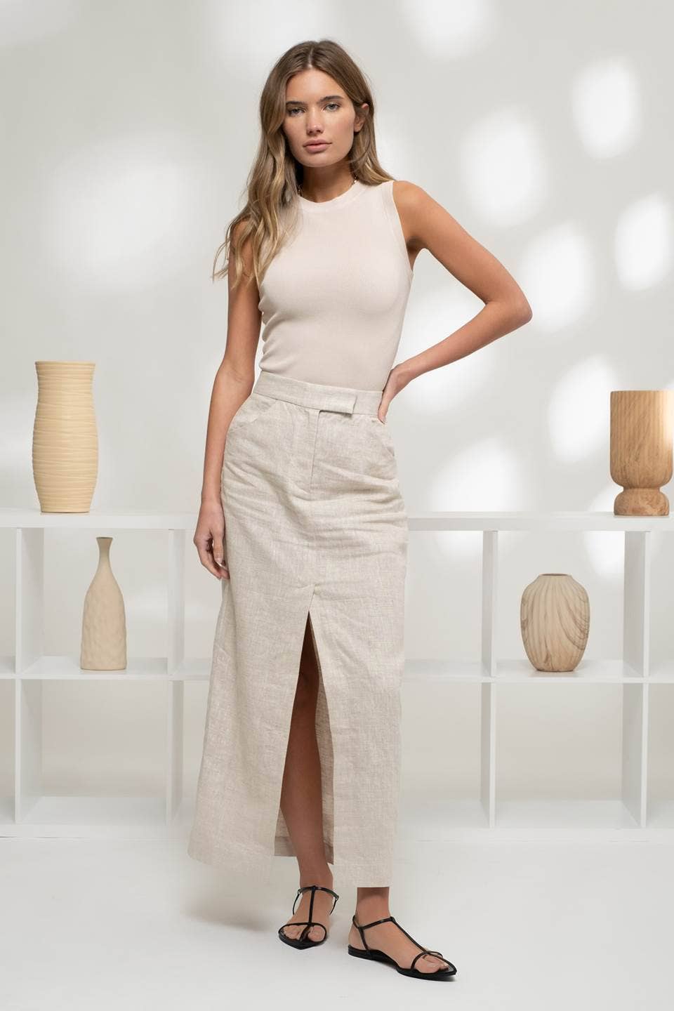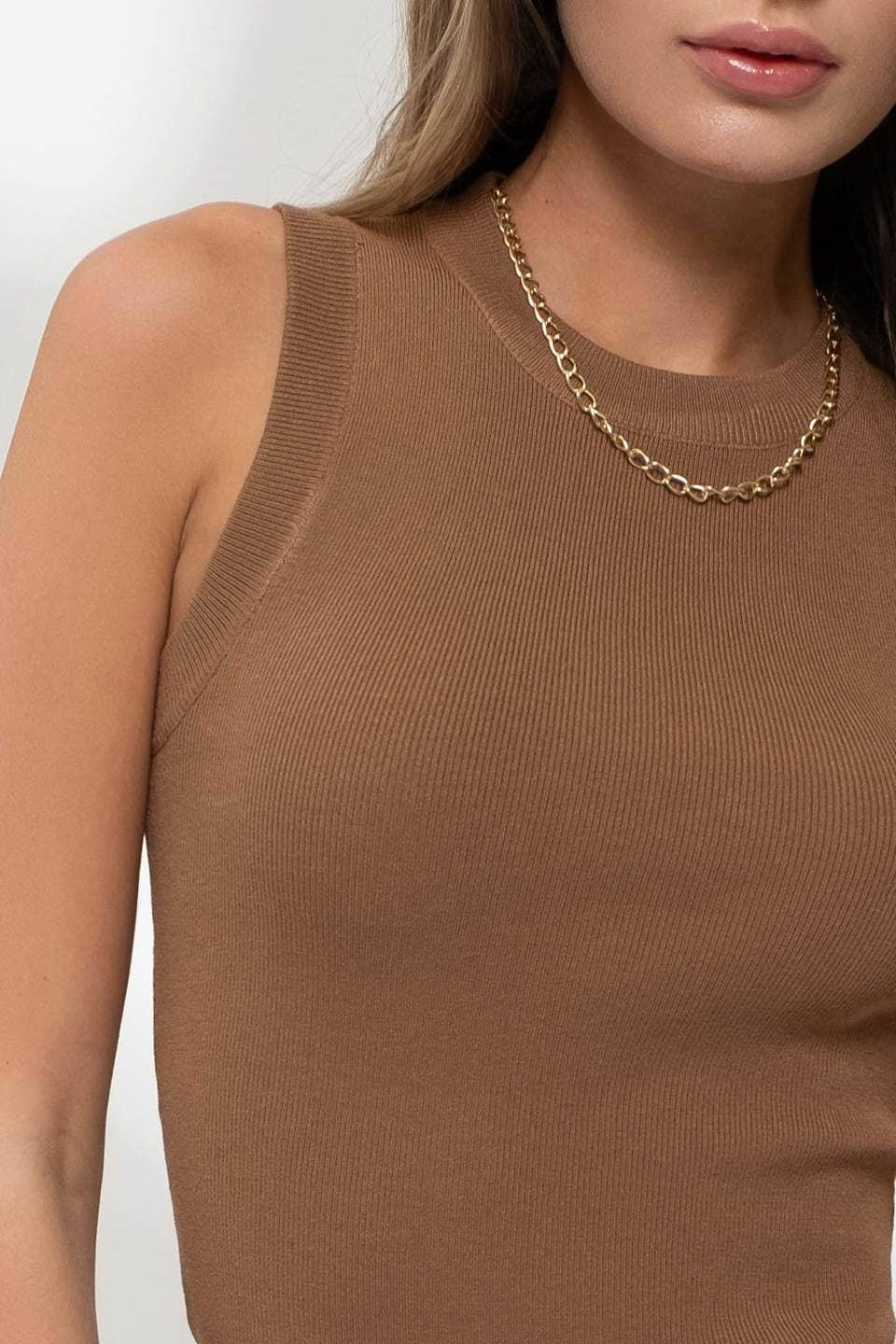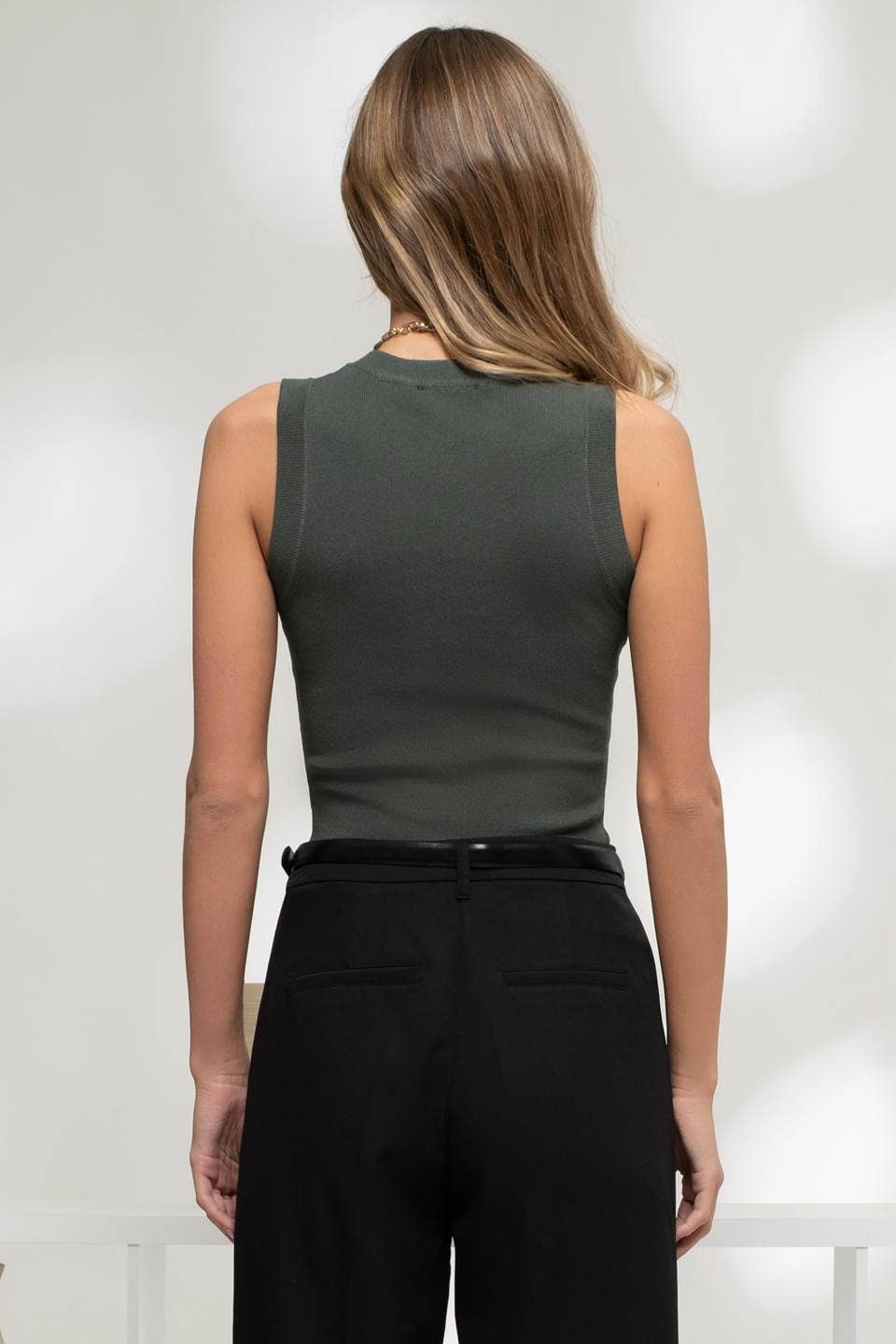 Crafted with a sleeveless fitted design, this sweater knit tank top features a round neckline and a contrasting border texture. It also boasts a solid, not lined construction.
